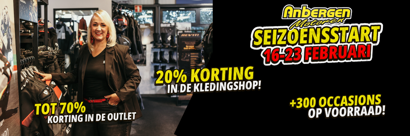 Het voorjaar komt er weer aan en onze showroom staat vol glimmende occasions en de nieuwste kledingcollecties hangen voor jullie klaar! Om het motorseizoen goed in te luiden profiteer je tijdens onze SEIZOENSSTART van maximale kortingen in onze kledingshop!