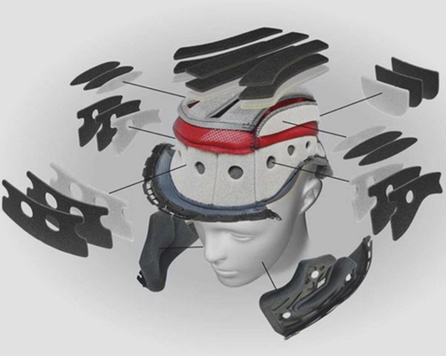 De binnenvoering van de Shoei-helm wordt aangepast met verschillende paddingdiktes. Zo ontstaat een perfecte balans tussen comfort en stabiliteit. - Eindresultaat: jouw persoonlijke Shoei